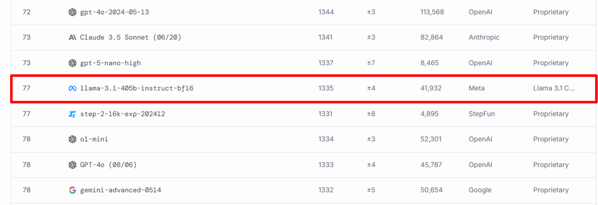 Even on LMarena's text leaderboard, the largest Llama 3.1 405b instruct model sits at #77, well below the cutting-edge.
