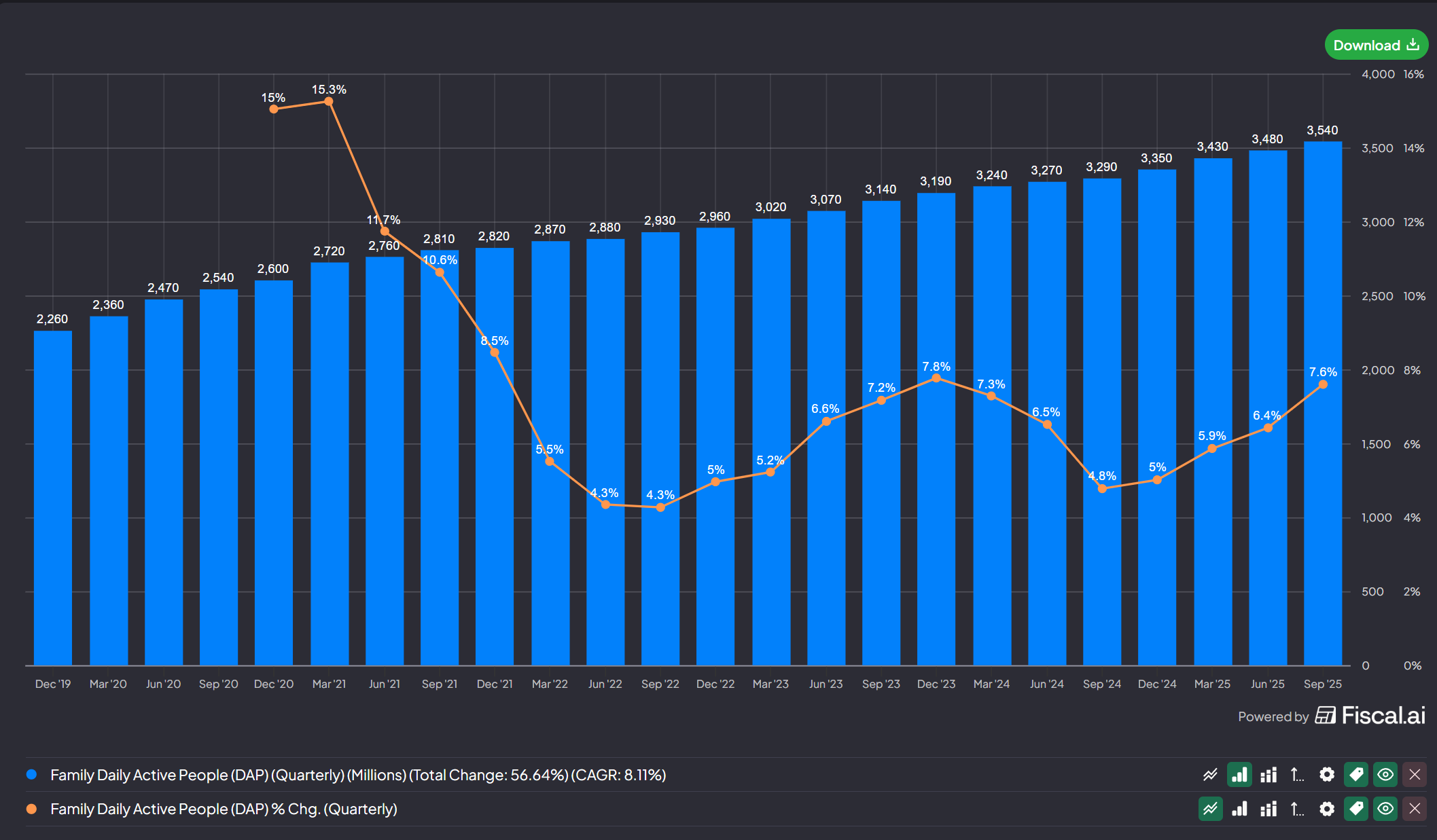- Family of Apps DAUs grew +7.6% YoY to reach 3.5 billion users (see chart below) - more than half of the global internet population and nearly 88% penetration when excluding restricted regions such as China and North Korea!