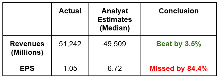 - EPS missed due to 1 time USD15.93bn tax charge from 1 Big Beautiful Bill Act.