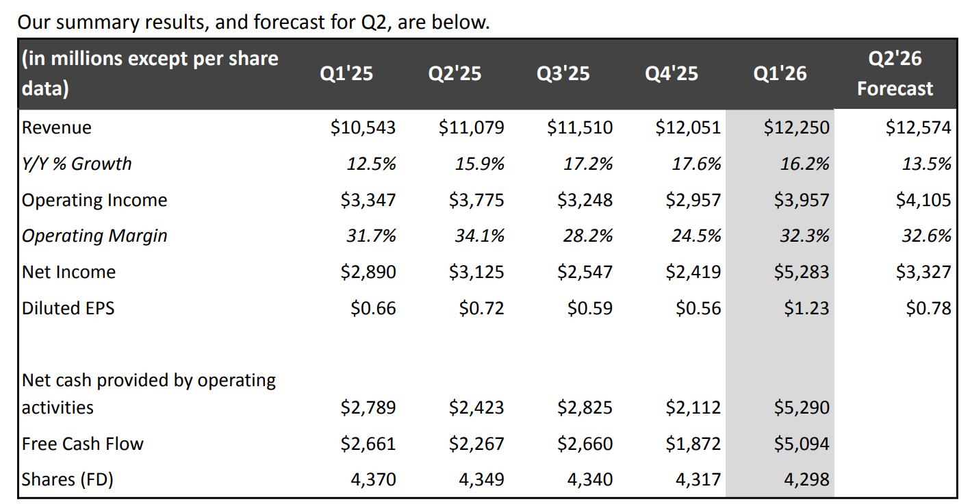 - Stable and expanding operating leverage, with margins trending up steadily over the years. Short-term guidance dips (like Q2'26) don't change the long-term direction.