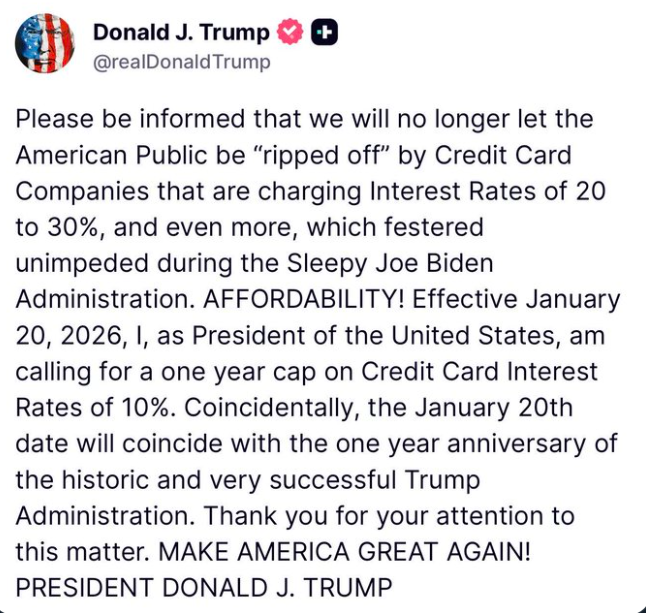 That said, I subscribe to the principle of "never say never". Trump has shown a willingness to pursue disruptive policy positions as we've seen with Venezuela, and he could well have stronger political will to push this rate cap through (to which I am prepared to average down in such a scenario that would likely create more volatility - I half hope this happens btw, it's rare to get Mastercard at incredible bargain prices).