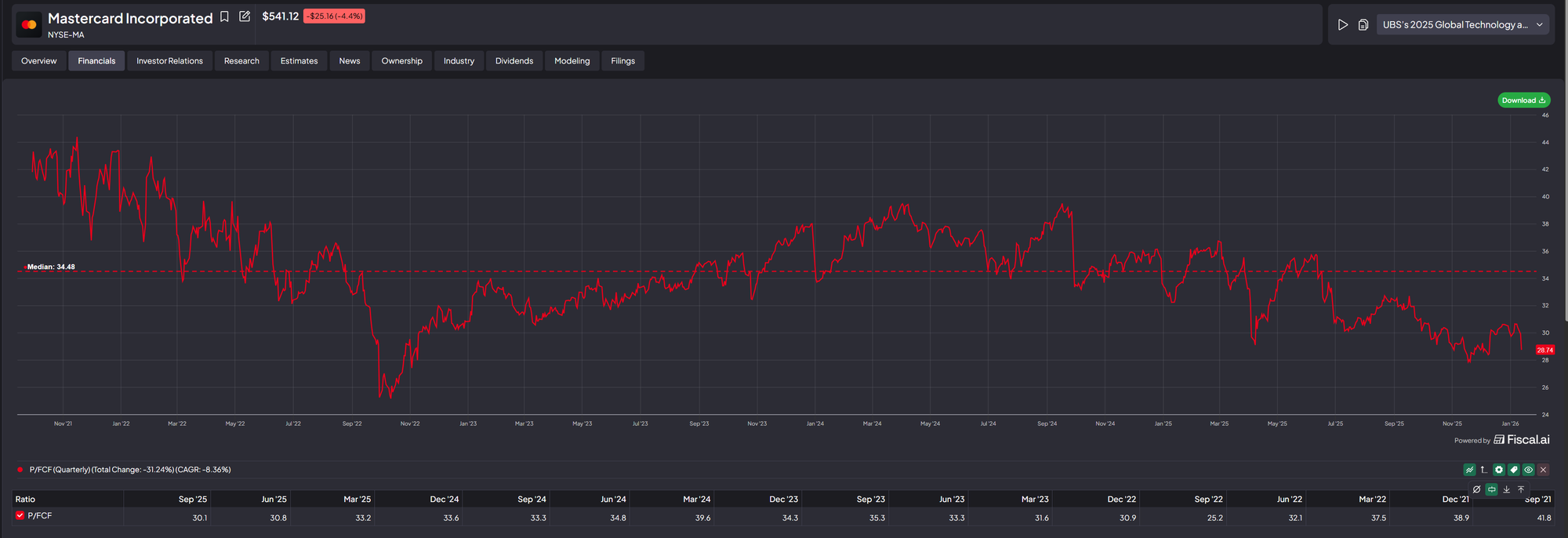 For context, I run a concentrated portfolio of 5 high conviction names and am only able to add new stocks from my watchlist when opportunity cost of allocating incremental capital is unusually low. In practice, this means I always prioritize adding to existing positions, and any new idea must compete directly with current holdings for capital allocation. Over the past several years, that bar was rarely met for Mastercard. Periods when Mastercard traded at a pessimistic valuation almost always coincided with similarly attractive or superior opportunities within my existing portfolio, which made reallocating capital difficult to justify.
