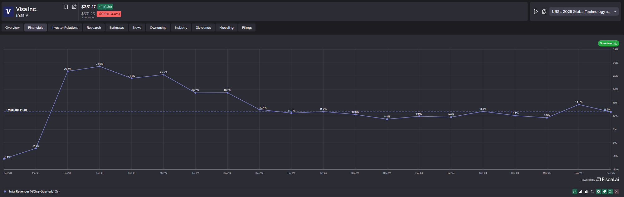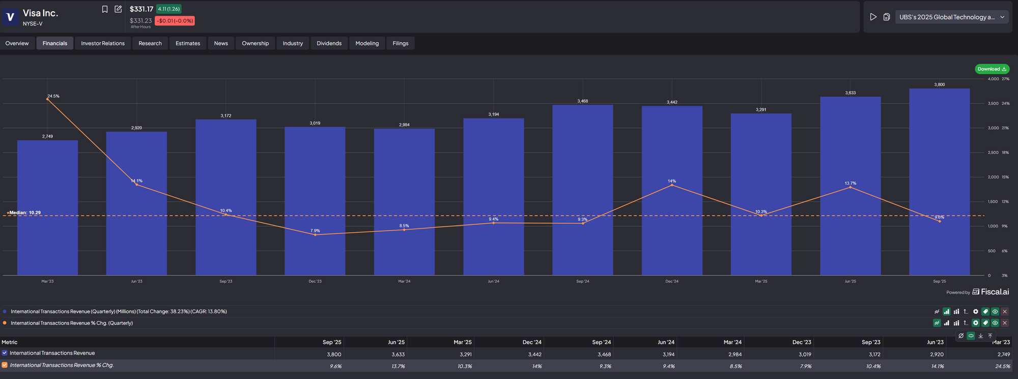 - Visa cross-border revenue growth: ~10.3 percent YoY