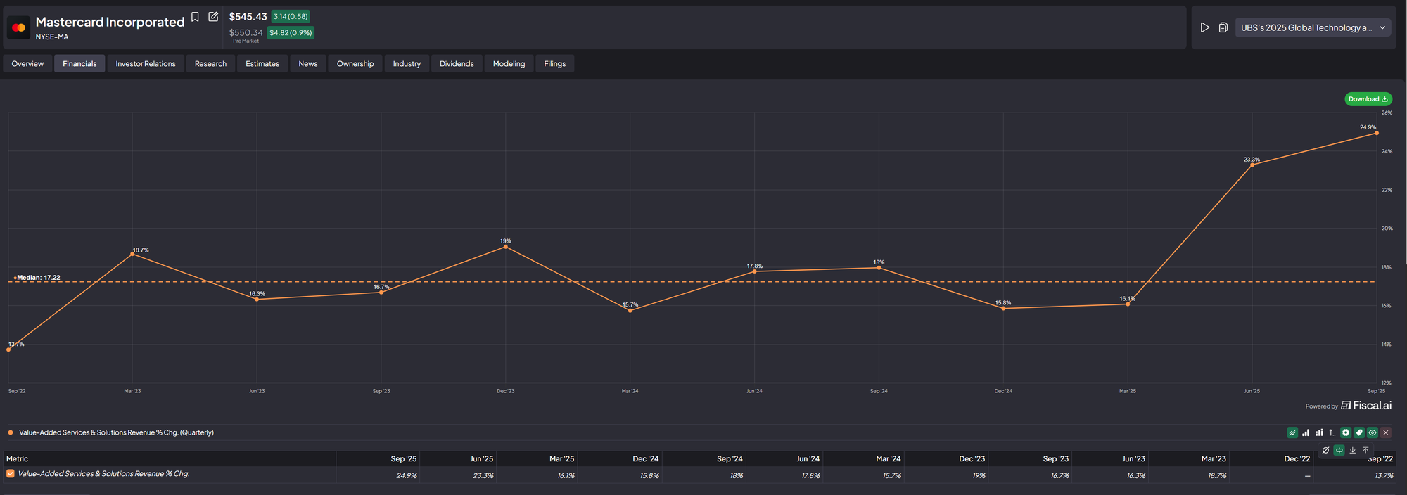 A second structural reason Mastercard is better positioned than Visa is the scale, maturity and profitability of its VAS portfolio outside of payment network income streams.