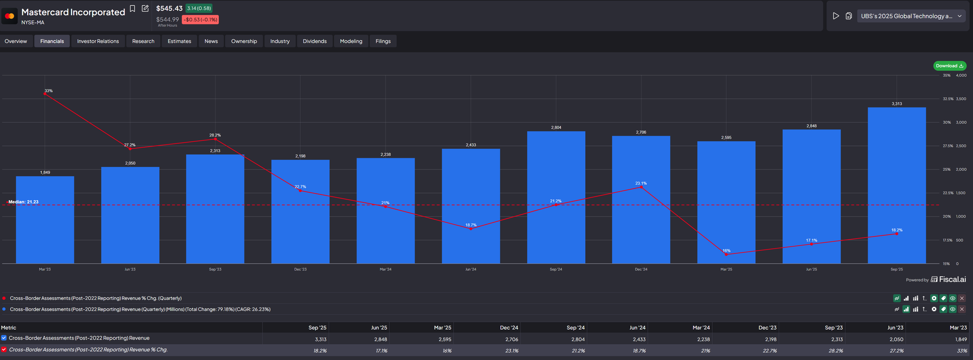 - Mastercard cross-border revenue growth: ~21 percent YoY