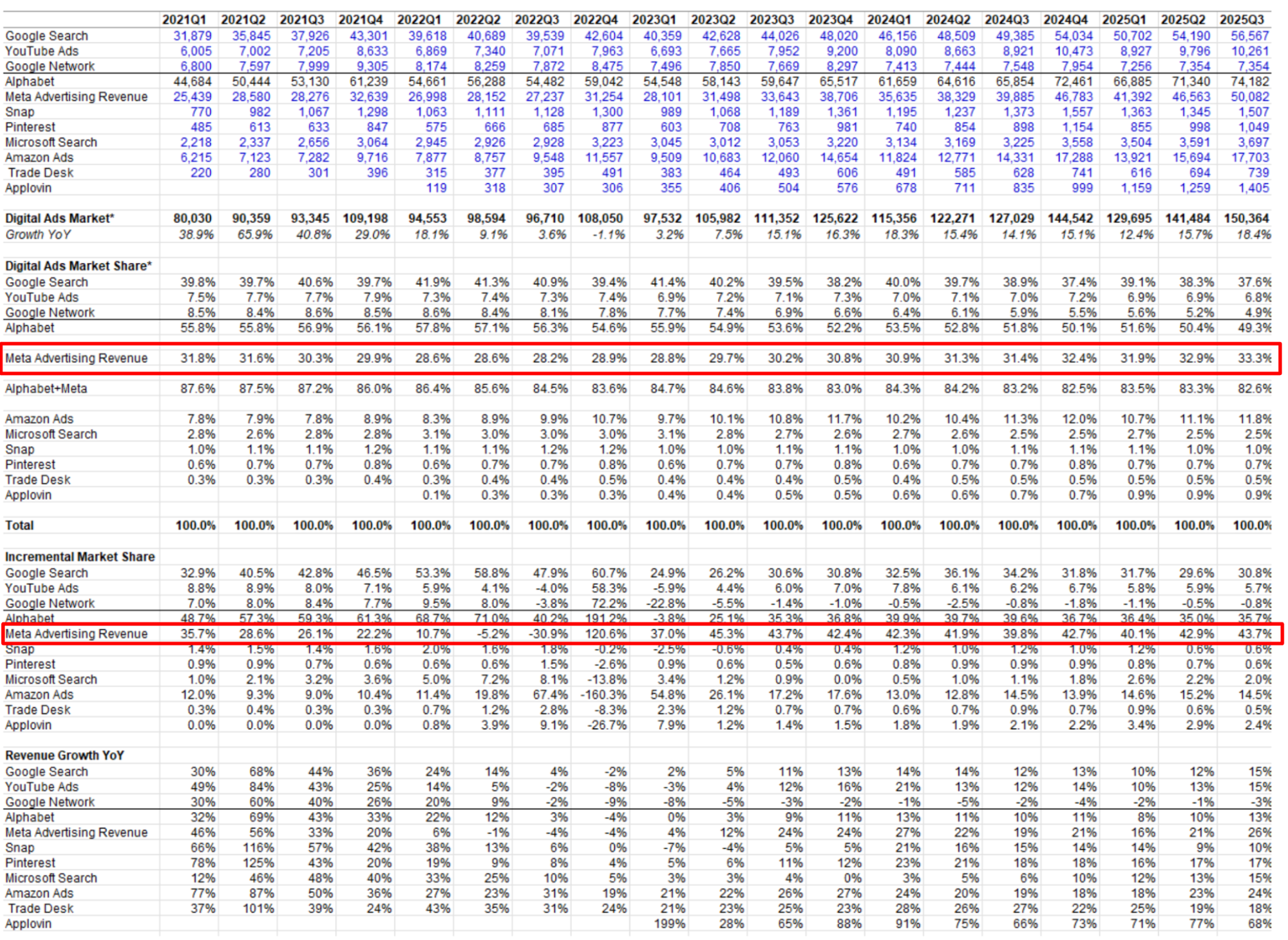 Meta’s share of the global digital advertising market (see diagram below):